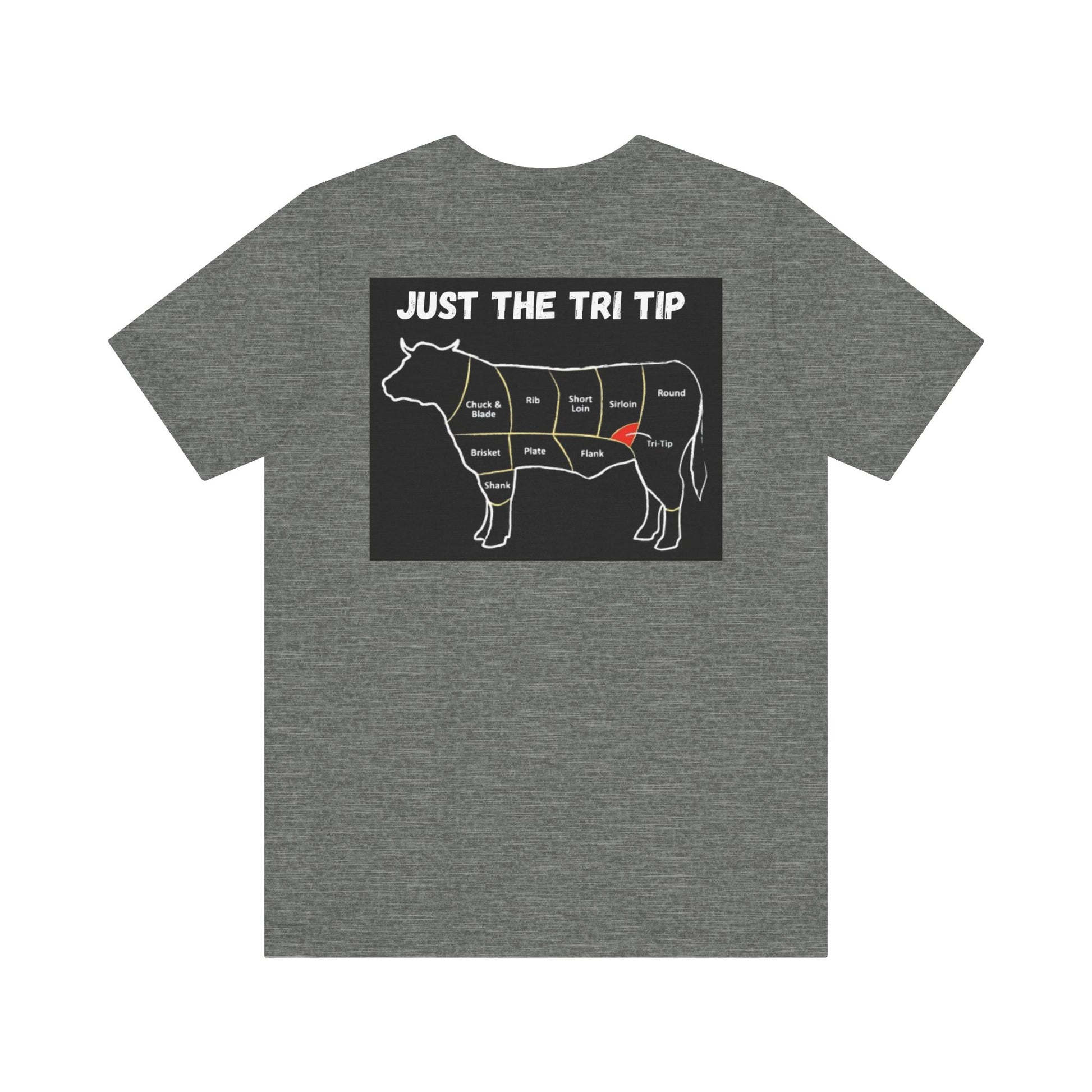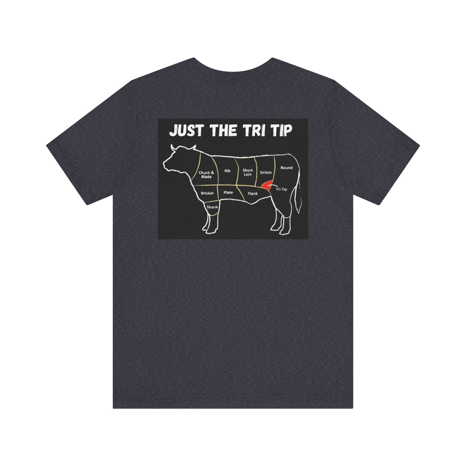A humorous and fun t-shirt design for BBQ enthusiasts, featuring the phrase 'just the tip'. This t-shirt exudes a laid-back and casual vibe, perfect for summer cookouts and gatherings with friends and family. Ideal for adults looking to add a touch of humor to their wardrobe during BBQ season.