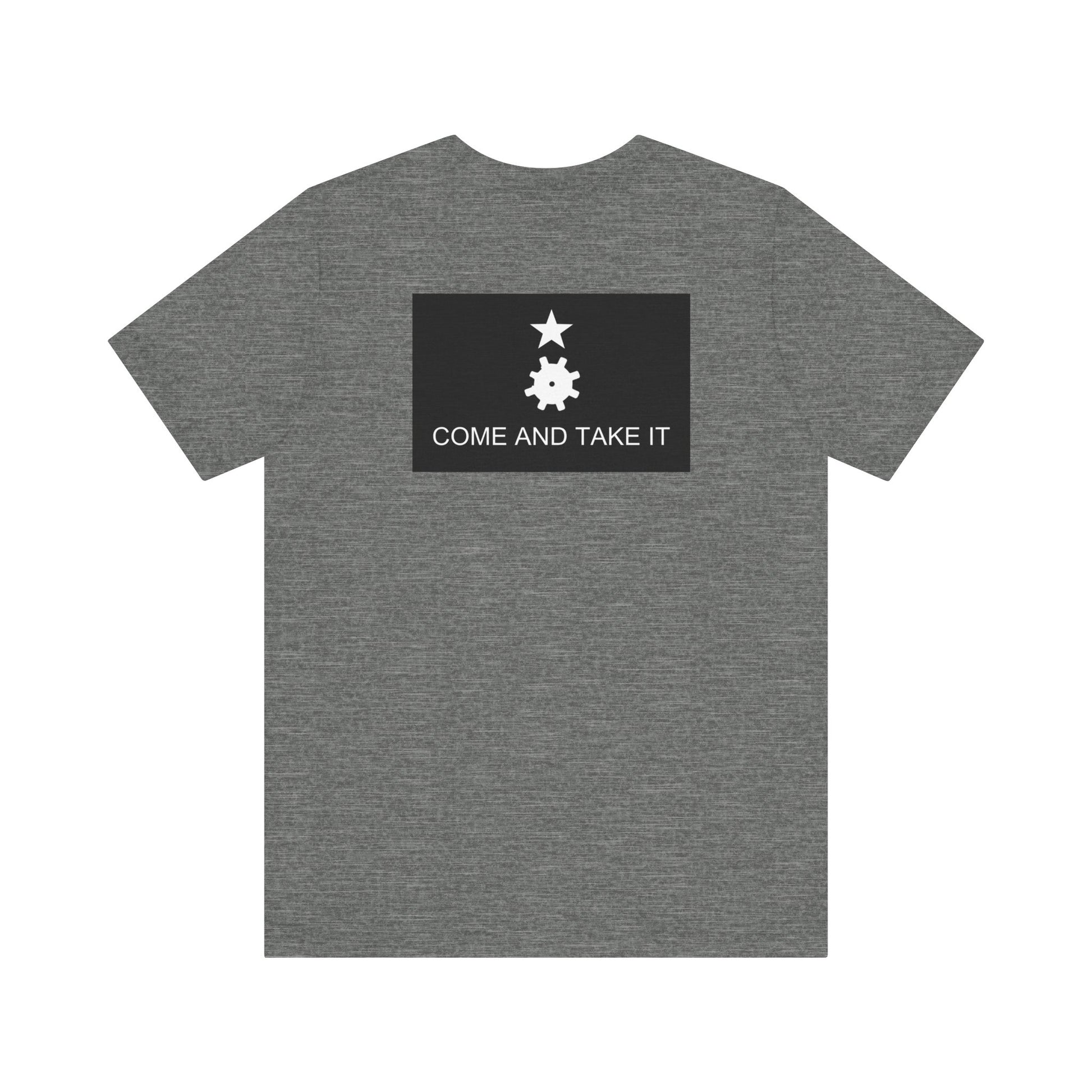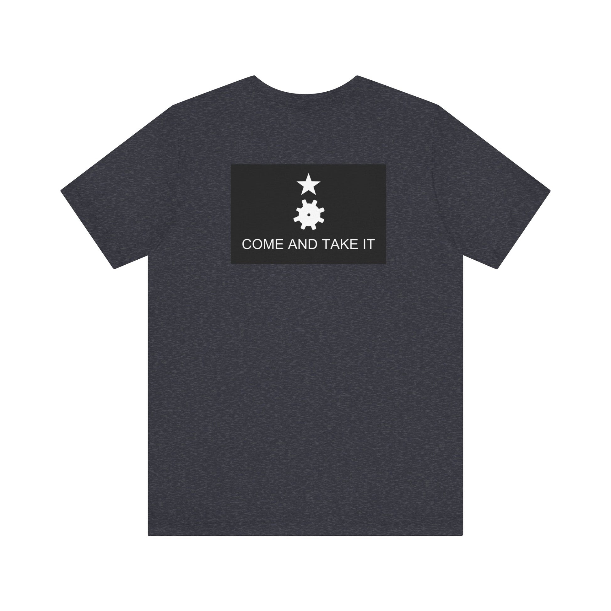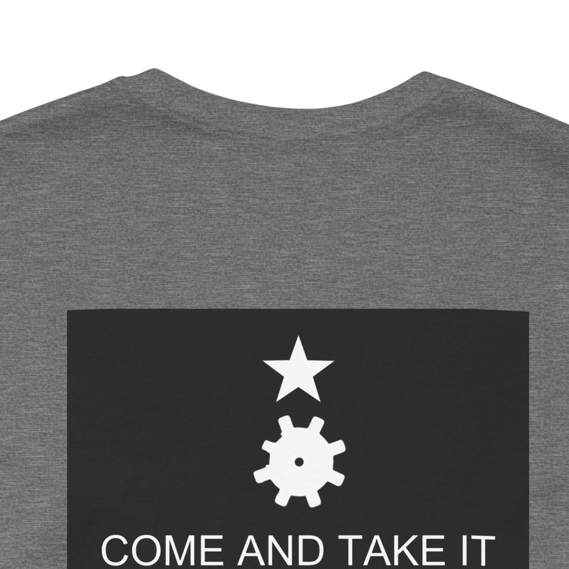 This 'Come and Take It' T-shirt exudes a rebellious and patriotic vibe, perfect for those who want to make a statement. It is ideal for casual wear and can be worn by anyone looking to showcase their love for freedom and independence. This T-shirt is relevant for Fourth of July, Memorial Day, and other patriotic celebrations.
